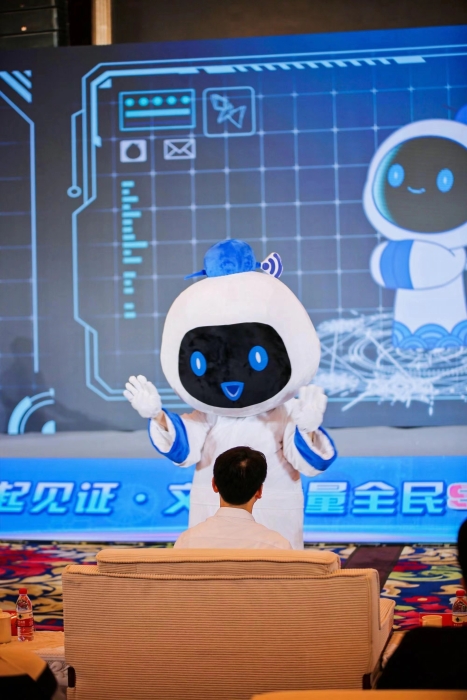 網(wǎng)絡(luò)文明是伴隨互聯(lián)網(wǎng)發(fā)展而產(chǎn)生的新的文明形態(tài),是現(xiàn)代社會文明進步的重要標(biāo)志。為了進一步在線上線下凝聚共識、共謀發(fā)展,大力倡導(dǎo)網(wǎng)絡(luò)文明,共同推進文明辦網(wǎng)、文明用網(wǎng)、文明上網(wǎng),代表著科技與文明交融、現(xiàn)代與古代碰撞的網(wǎng)絡(luò)文明IP——“明明”誕生了?!?,2,1……”隨著倒計時響起,宿遷網(wǎng)絡(luò)文明IP“明明”首次亮相,與現(xiàn)場人員擊掌互動,迅速將現(xiàn)場氣氛推向另一波高潮。
