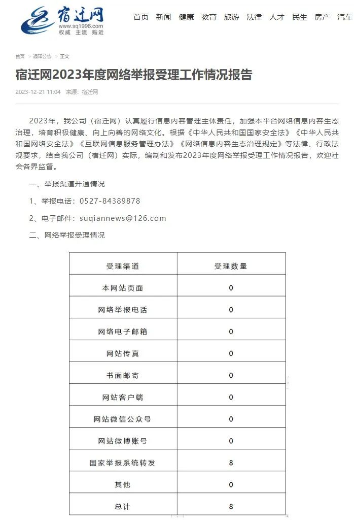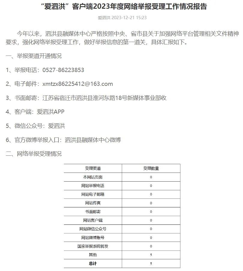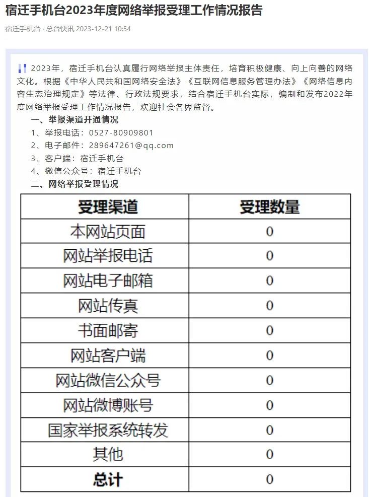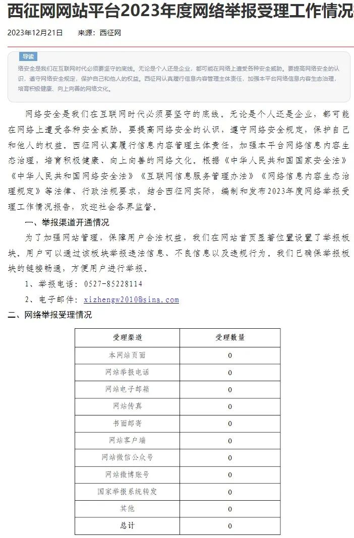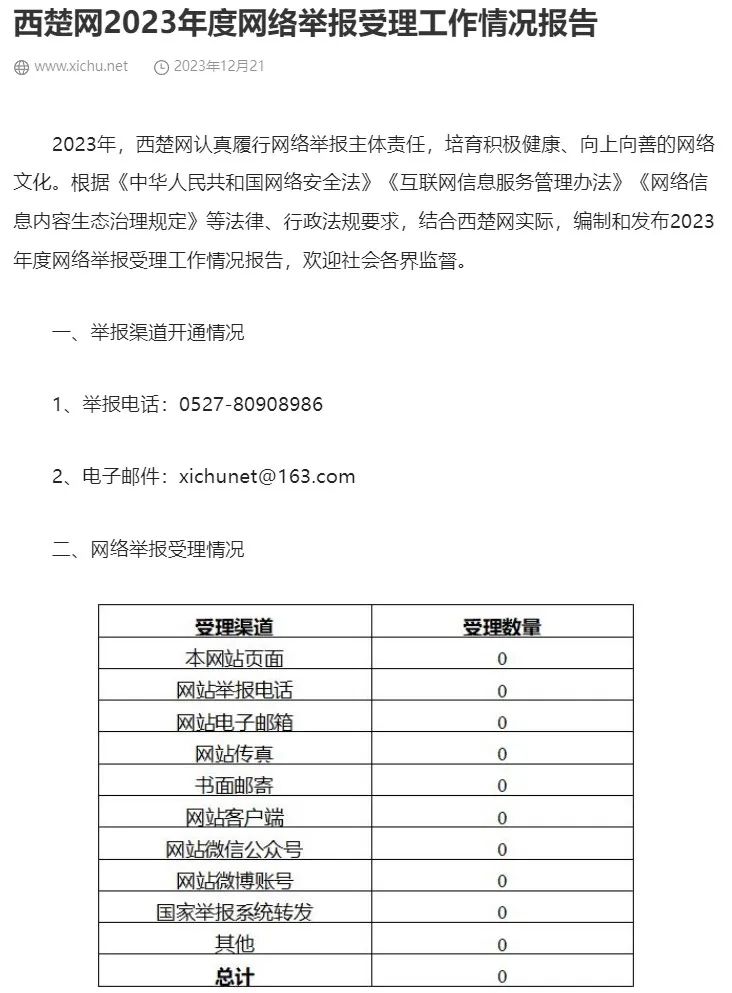 2023年度網(wǎng)絡(luò)舉報(bào)受理工作情況報(bào)告