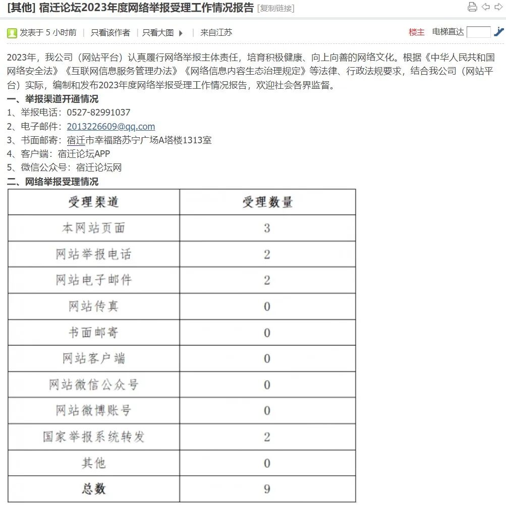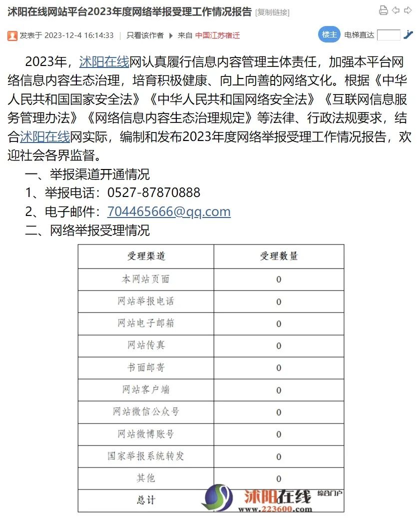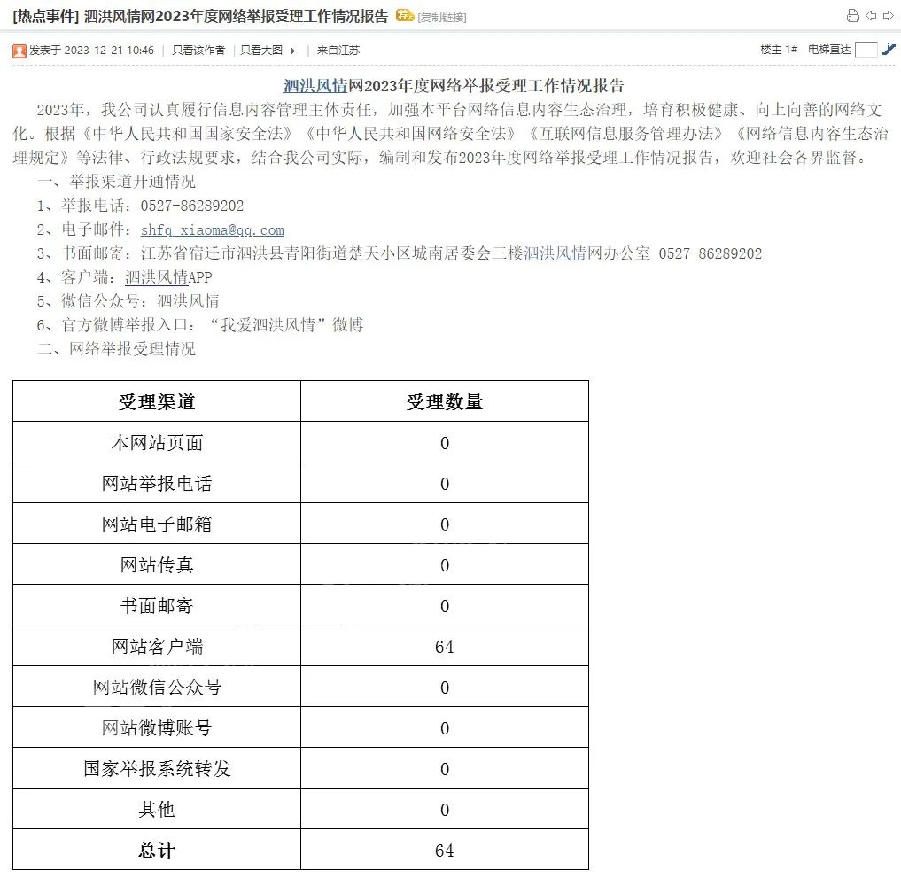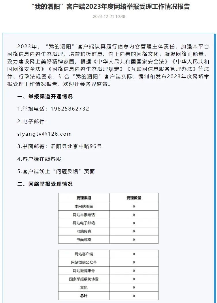2023年度網(wǎng)絡(luò)舉報(bào)受理工作情況報(bào)告