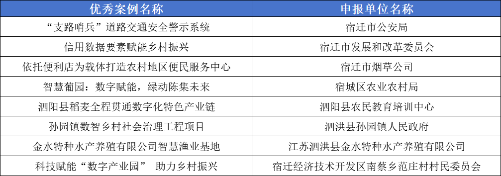 為深入貫徹落實(shí)省、市關(guān)于數(shù)字鄉(xiāng)村發(fā)展的一系列決策部署,總結(jié)提煉實(shí)踐經(jīng)驗(yàn),復(fù)制推廣典型做法,市委網(wǎng)信辦、市農(nóng)業(yè)農(nóng)村局共同開(kāi)展2024年宿遷市數(shù)字鄉(xiāng)村建設(shè)優(yōu)秀案例征集活動(dòng)。經(jīng)各地各部門(mén)推薦、預(yù)審、專(zhuān)家評(píng)審,擬確定“‘支路哨兵’道路交通安全警示系統(tǒng)”等8個(gè)案例為2024年宿遷市數(shù)字鄉(xiāng)村建設(shè)優(yōu)秀案例,現(xiàn)將名單予以公示。