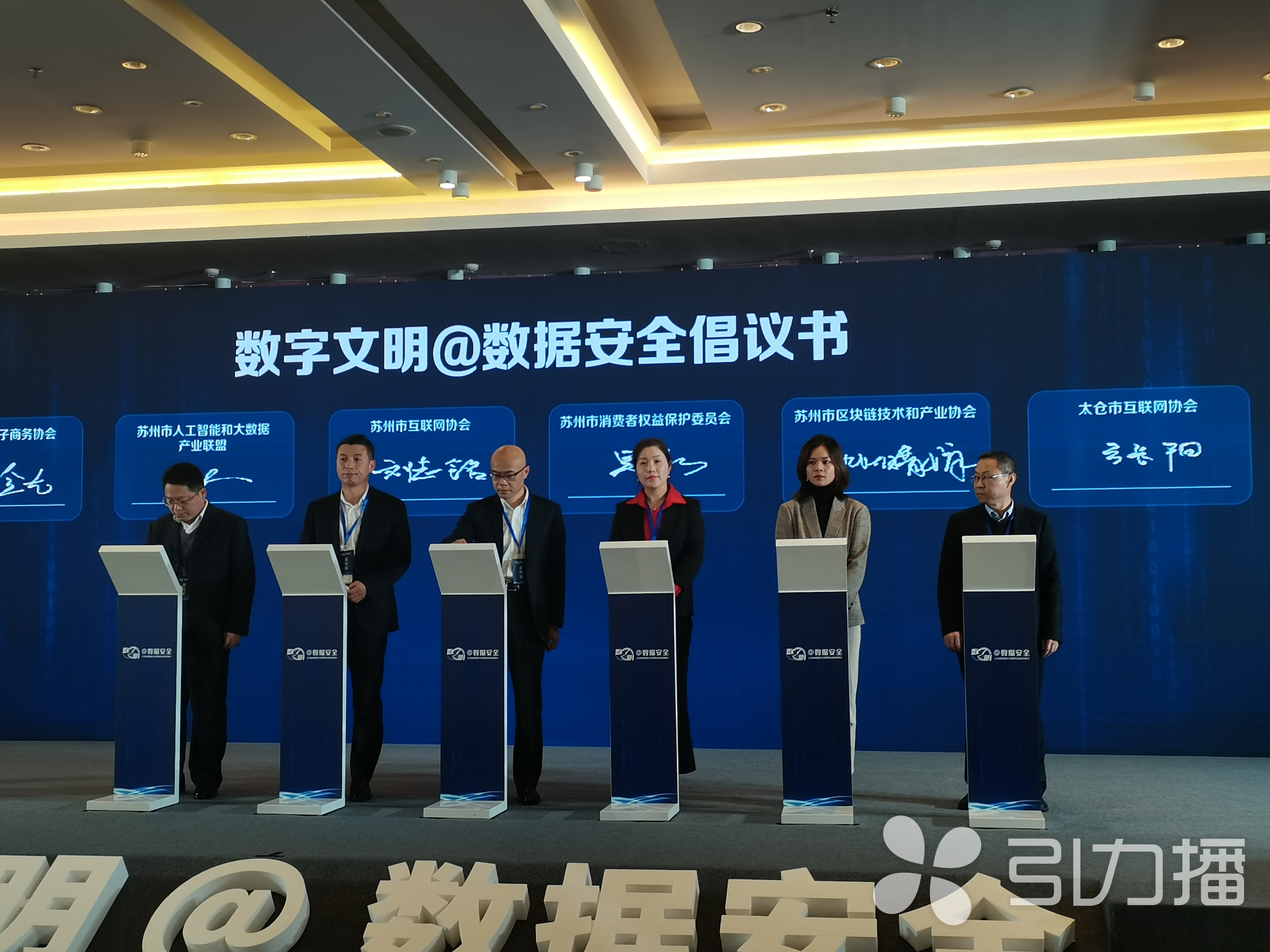現(xiàn)場,蘇州市互聯(lián)網(wǎng)協(xié)會、蘇州市消費者權(quán)益保護委員會、太倉市互聯(lián)網(wǎng)協(xié)會等共同簽署數(shù)字文明@數(shù)據(jù)安全倡議書,號召各方堅持發(fā)展和安全并重原則,堅持共商共建共享理念,齊心協(xié)力促進數(shù)據(jù)安全,共筑網(wǎng)絡(luò)安全防線。