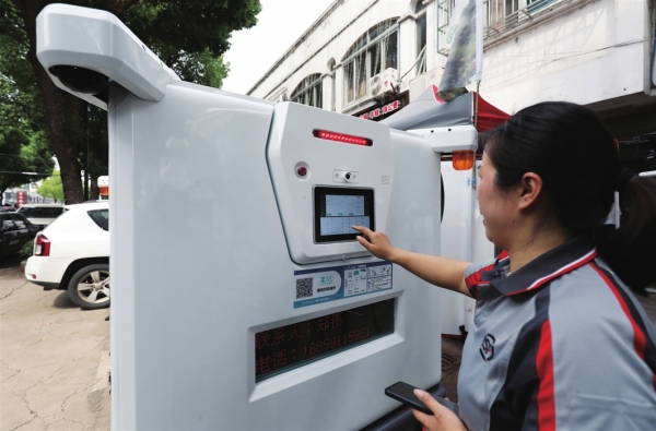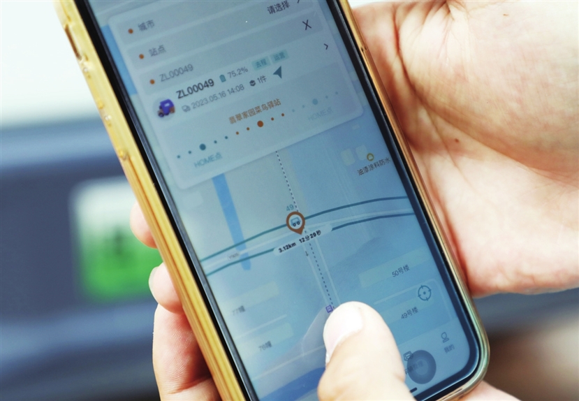 快遞員施利芬在車尾大屏輸入運(yùn)輸信息后,車輛開始工作。