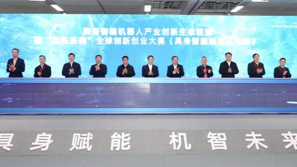 吳慶文表示,本次大會以“具身賦能,機(jī)智未來”為主題,會聚了具身智能領(lǐng)域的權(quán)威專家、業(yè)內(nèi)大咖,展示前沿技術(shù),剖析產(chǎn)業(yè)動態(tài),謀劃合作發(fā)展。期望各位專家學(xué)者、業(yè)界同仁多在蘇州走走看看,將“金點(diǎn)子”留在蘇州,把好項(xiàng)目投在蘇州。同時希望本土企業(yè)家搶抓發(fā)展機(jī)遇,加強(qiáng)產(chǎn)業(yè)鏈對接,創(chuàng)造更多場景和合作。蘇州將進(jìn)一步加大政策支持力度、提高項(xiàng)目招引熱度、拓寬人才引進(jìn)維度,期待與大家同頻共振、同向而行,攜手開創(chuàng)具身智能的美好未來。
