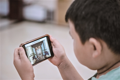 一位小朋友在暢游泰州非遺館網(wǎng)上展廳。唐春杰 楊進(jìn)勇供圖