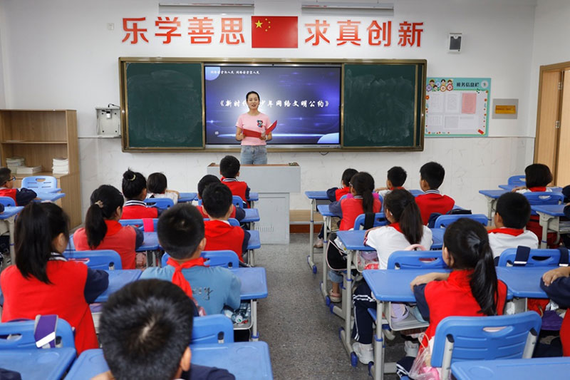 圖為斜橋鎮(zhèn)中心小學(xué)誦讀《新時(shí)代青少年網(wǎng)絡(luò)文明公約》