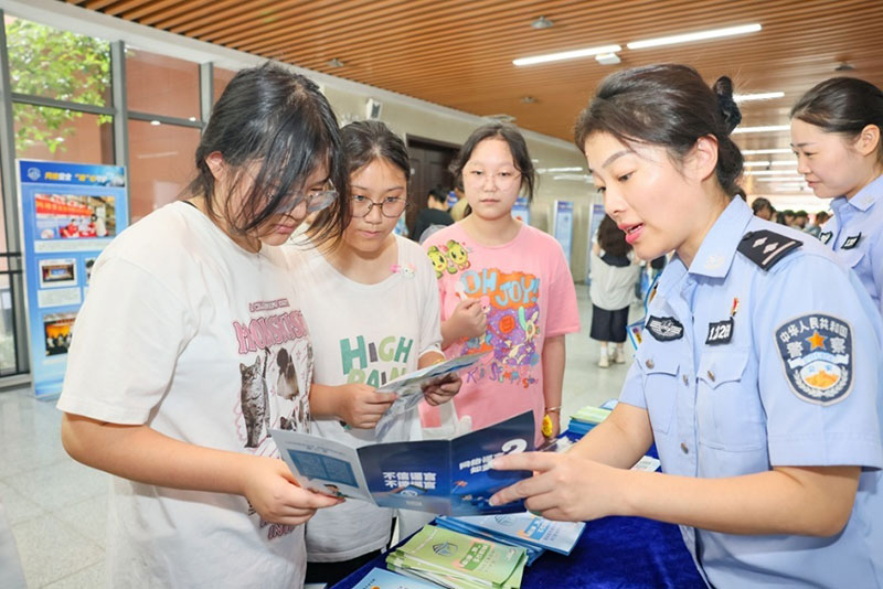 圖為民警向?qū)W生宣傳網(wǎng)絡(luò)安全知識(shí)