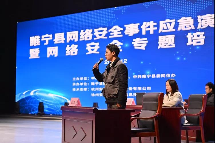 12月17日上午,睢寧縣舉辦網(wǎng)絡(luò)安全事件應(yīng)急演練暨網(wǎng)絡(luò)安全專題培訓(xùn)。此次活動由睢寧縣委宣傳部、睢寧縣委網(wǎng)信辦主辦,睢寧縣融媒體中心承辦。睢寧縣經(jīng)濟(jì)開發(fā)區(qū)、各鎮(zhèn)(街道)、縣直各單位的網(wǎng)絡(luò)安全分管領(lǐng)導(dǎo)及業(yè)務(wù)科室負(fù)責(zé)人參加活動。徐州市委宣傳部副部長、網(wǎng)信辦主任宋小虎出席活動并講話。睢寧縣委常委、宣傳部部長洪海濤致開幕辭。