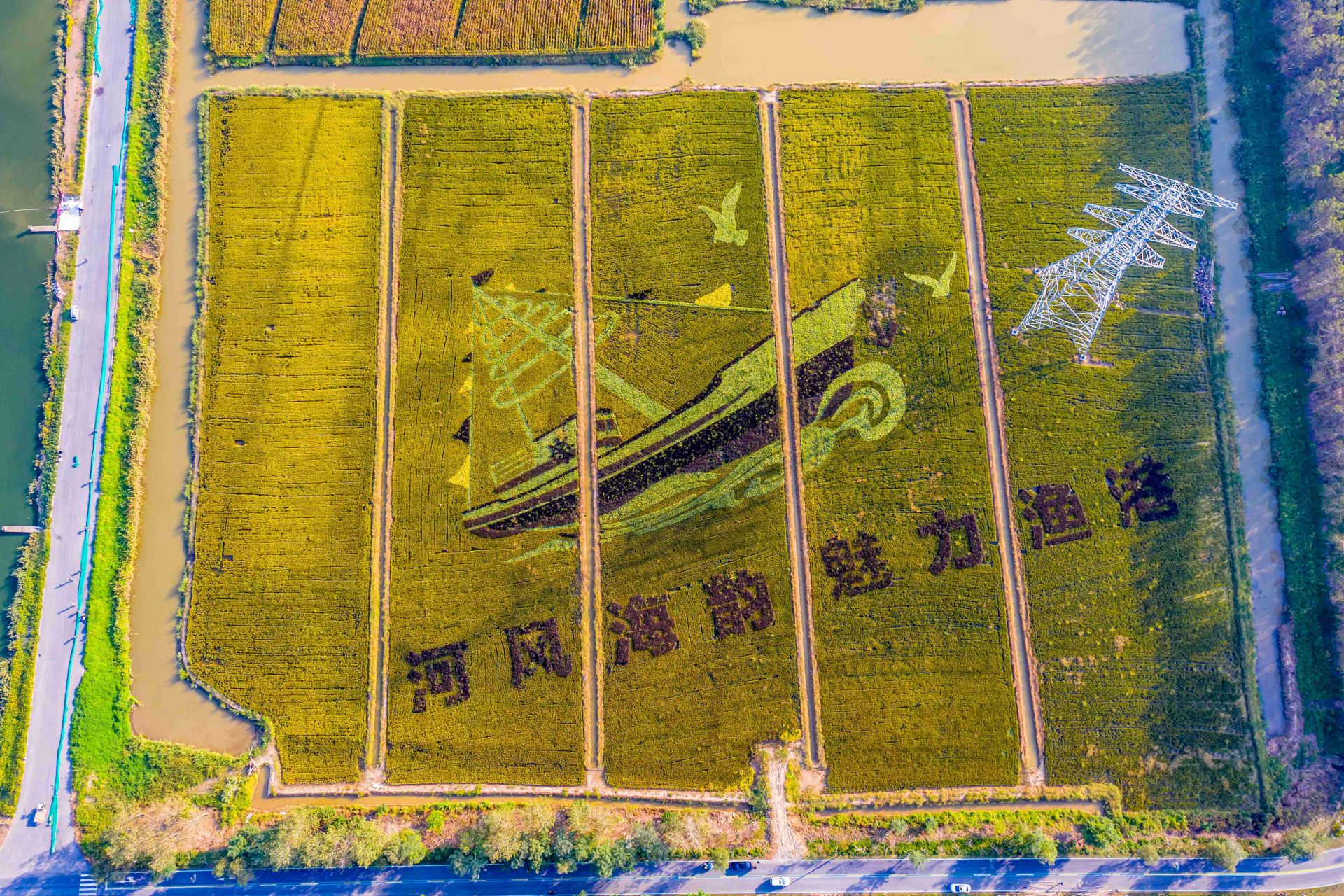 “我是在用無(wú)人機(jī)航拍的過(guò)程中發(fā)現(xiàn)了稻田畫,感覺很震撼!”透過(guò)攝影愛好者賈先生的無(wú)人機(jī)操控器屏幕,深色水稻繪就的“河風(fēng)海韻 魅力漁港”八個(gè)大字清晰可見,其余不同顏色水稻繪制出漁船揚(yáng)帆起航的圖案。