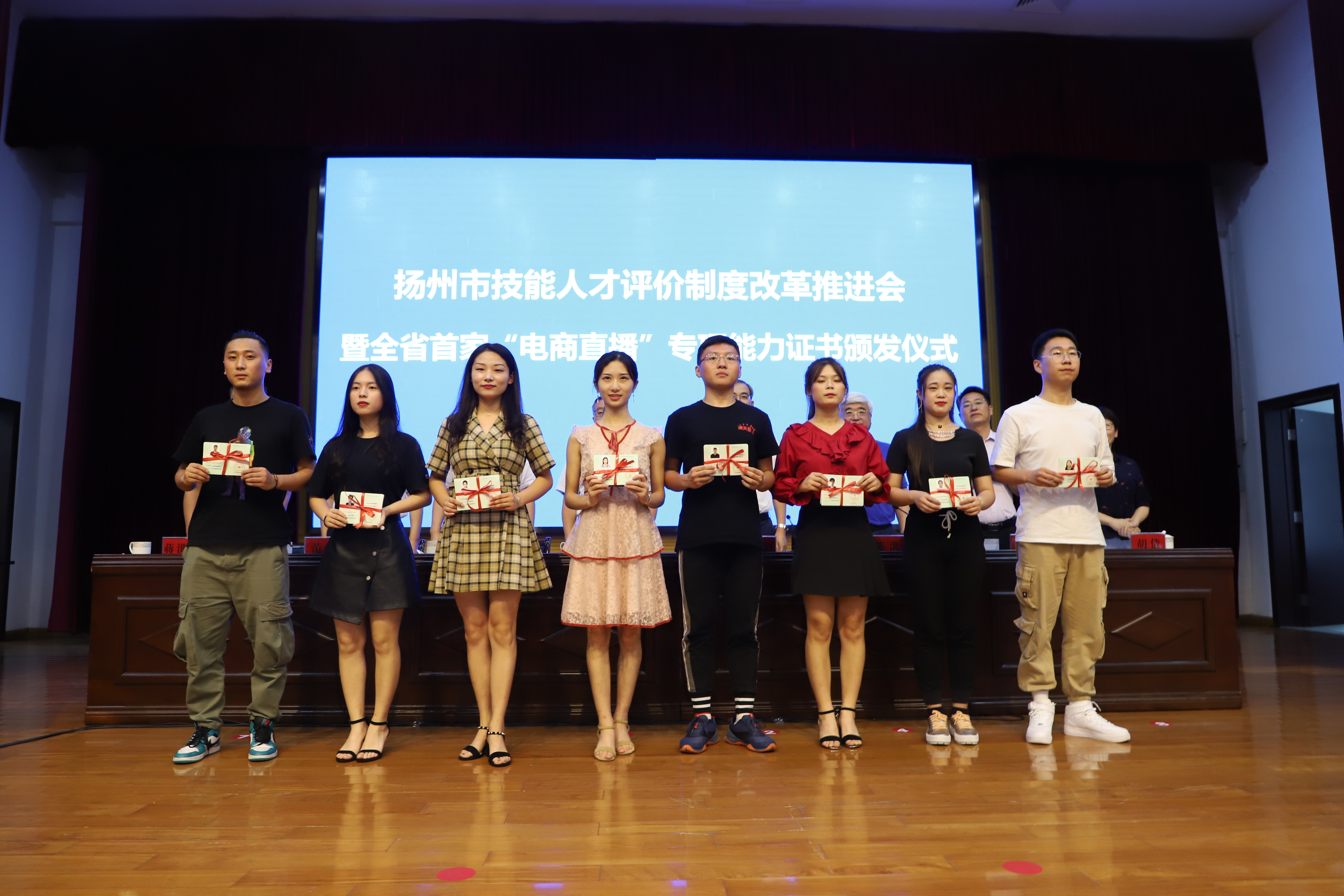 “吃葡萄容易,洗葡萄難,大家是不是和我有一樣的煩惱,來看看這個籃子……”在揚(yáng)州工業(yè)職業(yè)技術(shù)學(xué)院電商直播學(xué)院的直播教室里,參加江蘇省首批電商直播專項(xiàng)職業(yè)能力考核的主播們正在進(jìn)行直播實(shí)操考試。8月13日,揚(yáng)州市技能人才評價改革推進(jìn)會暨江蘇首家“電商直播”專項(xiàng)能力證書頒發(fā)儀式在揚(yáng)州工業(yè)職業(yè)技術(shù)學(xué)院舉行,江蘇首批26名主播拿到了揚(yáng)州市人社局頒發(fā)的“電商直播專項(xiàng)職業(yè)能力證書”。