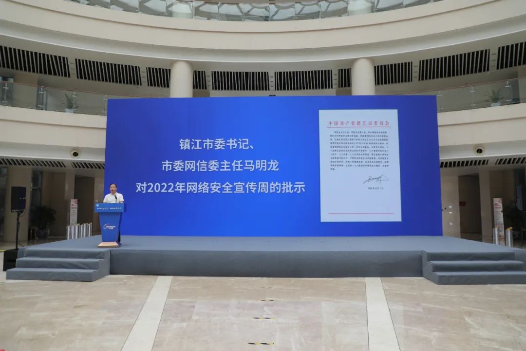 9月7日下午,2022年鎮(zhèn)江市網(wǎng)絡(luò)安全宣傳周暨個人信息保護主題日盛大開幕。鎮(zhèn)江市委常委、市委宣傳部部長、市委秘書長、市委網(wǎng)信委副主任陳可可,鎮(zhèn)江市委網(wǎng)信辦主任兼市委宣傳部副部長翟勝勇,共青團鎮(zhèn)江市委書記張沖,鎮(zhèn)江市婦聯(lián)主席楊菊蘭,人民銀行鎮(zhèn)江市中心支行行長張建平等領(lǐng)導(dǎo)出席開幕式。