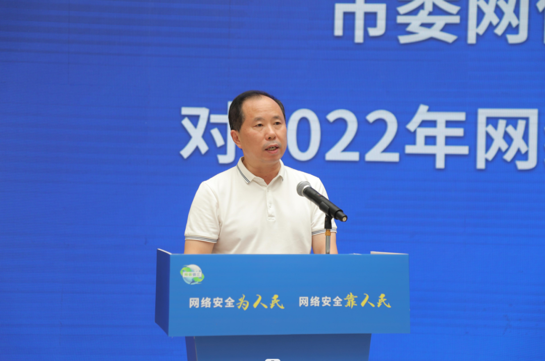市委網(wǎng)信辦主任兼市委宣傳部副部長翟勝勇宣讀市委書記、市委網(wǎng)信委主任馬明龍關(guān)于網(wǎng)絡(luò)安全宣傳周的批示。