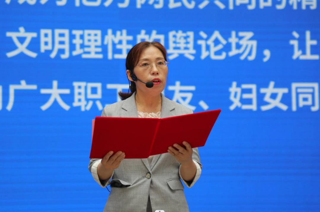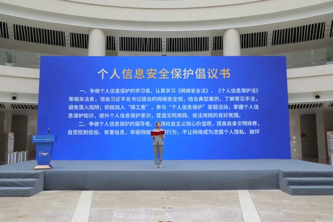 全國勞模、中國好人、全國巾幗建功標(biāo)兵、江蘇省優(yōu)秀共產(chǎn)黨員楊凌宣讀《個人信息保護倡儀書》。