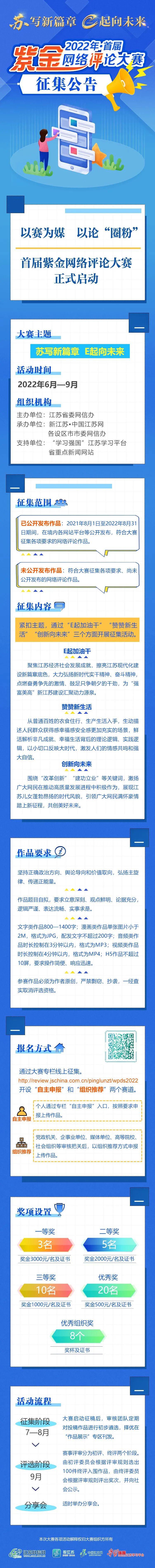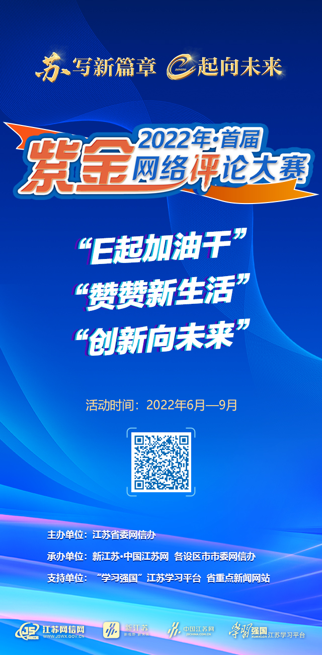 為切實(shí)推進(jìn)江蘇網(wǎng)絡(luò)評論高質(zhì)量發(fā)展,大力弘揚(yáng)主旋律、傳播正能量,“蘇寫新篇章 E起向未來”首屆紫金網(wǎng)絡(luò)評論大賽近日正式啟動。大賽面向全網(wǎng)征集參賽作品。