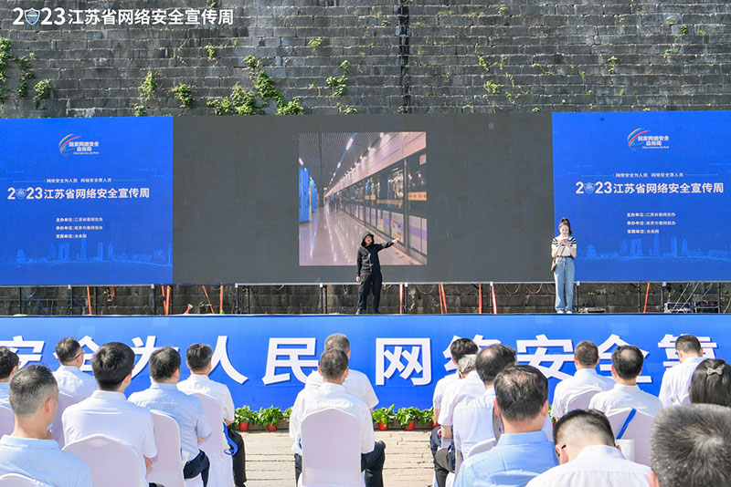 在開(kāi)幕式現(xiàn)場(chǎng),舉行了網(wǎng)絡(luò)安全知識(shí)競(jìng)答、“網(wǎng)絡(luò)安全 E路成長(zhǎng)”青少年網(wǎng)絡(luò)安全科普宣傳與職業(yè)體驗(yàn)活動(dòng)啟動(dòng)儀式、2023年度江蘇省網(wǎng)絡(luò)安全宣傳大使聘任儀式、發(fā)布網(wǎng)絡(luò)安全倡議、2023年網(wǎng)絡(luò)安全宣傳周“主題日”海報(bào)創(chuàng)意設(shè)計(jì)大賽結(jié)果展示等活動(dòng),同時(shí)開(kāi)展了網(wǎng)絡(luò)安全原創(chuàng)節(jié)目展演。