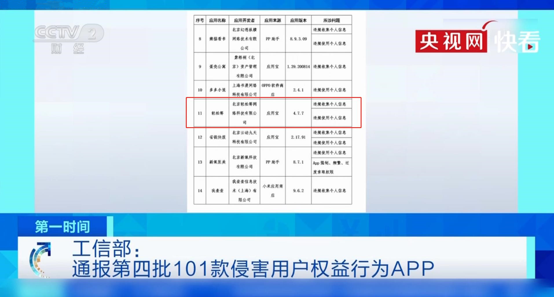 8月31日,工信部發(fā)布2020年第四批《關(guān)于侵害用戶權(quán)益行為的APP通報》,點名101款A(yù)PP,并要求在在9月7日前完成整改落實工作,逾期不整改的將依法依規(guī)組織開展相關(guān)處置工作。逾期不改的,公開曝光;情節(jié)嚴(yán)重的,依法暫停相關(guān)業(yè)務(wù)、停業(yè)整頓、吊銷相關(guān)業(yè)務(wù)許可證或者吊銷營業(yè)執(zhí)照。