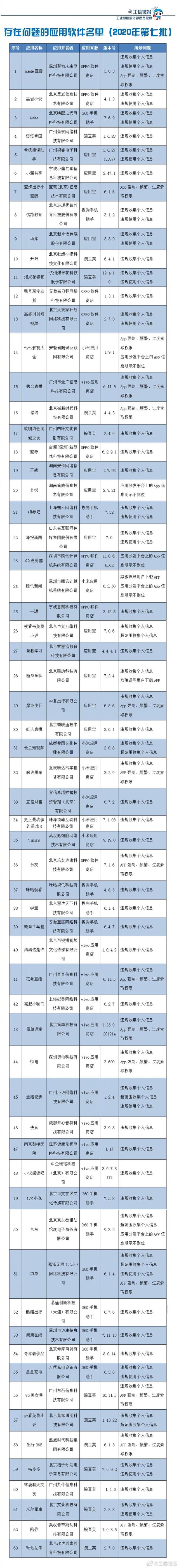 附件:存在問題的應(yīng)用軟件名單(2020年第七批)