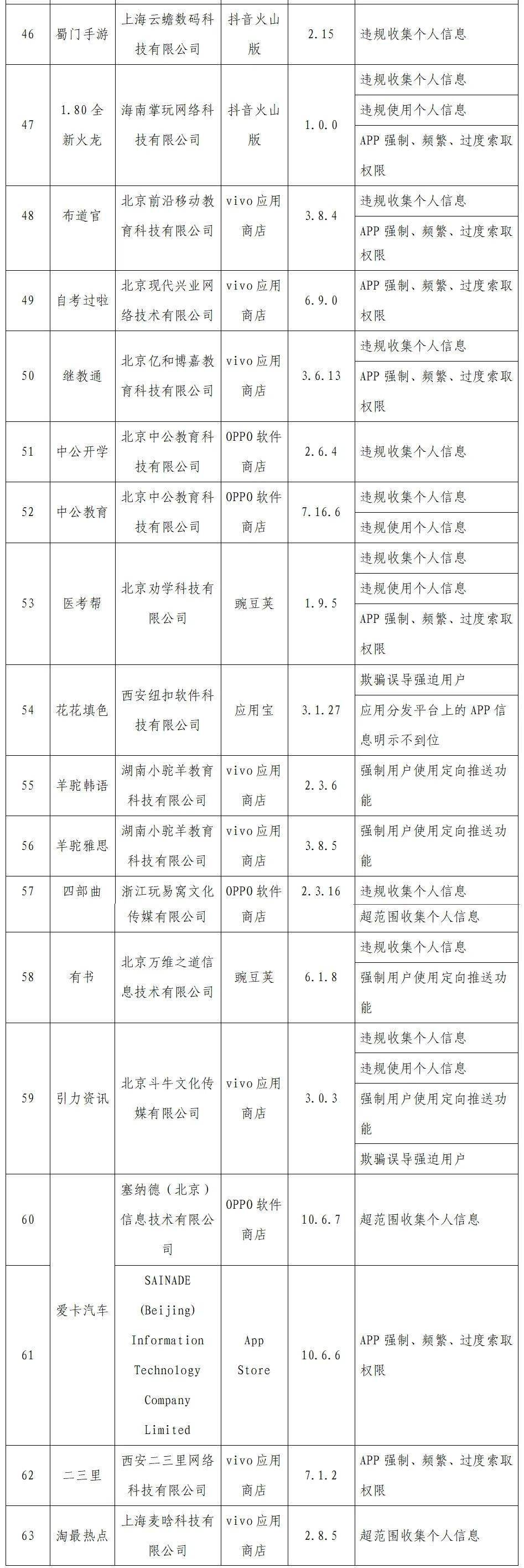 依據(jù)《個(gè)人信息保護(hù)法》《網(wǎng)絡(luò)安全法》《電信條例》《電信和互聯(lián)網(wǎng)用戶個(gè)人信息保護(hù)規(guī)定》等法律法規(guī),我部近期組織第三方檢測(cè)機(jī)構(gòu)對(duì)移動(dòng)互聯(lián)網(wǎng)應(yīng)用程序(APP)進(jìn)行檢查,截至目前,尚有107款A(yù)PP未完成整改。同時(shí),檢測(cè)過程中發(fā)現(xiàn),13款內(nèi)嵌第三方軟件開發(fā)工具包(SDK)存在違規(guī)收集用戶設(shè)備信息的行為(詳見附件)。
