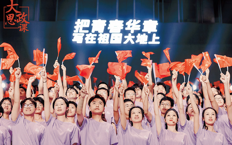 2023年10月14日,“把青春華章寫在祖國大地上”大思政課網(wǎng)絡(luò)主題宣傳和互動引導(dǎo)活動在四川大學(xué)舉行。圖為現(xiàn)場大學(xué)生齊唱歌曲《我愛你,中國》。 人民網(wǎng)、四川省委網(wǎng)信辦供圖