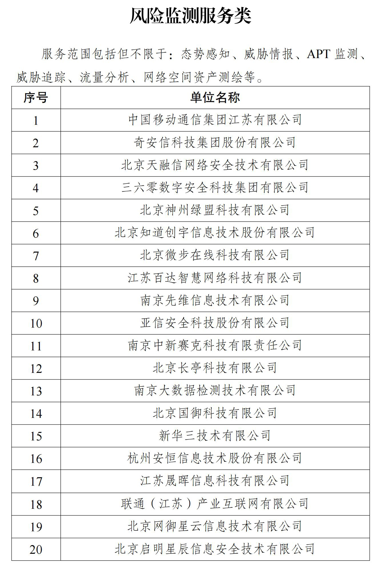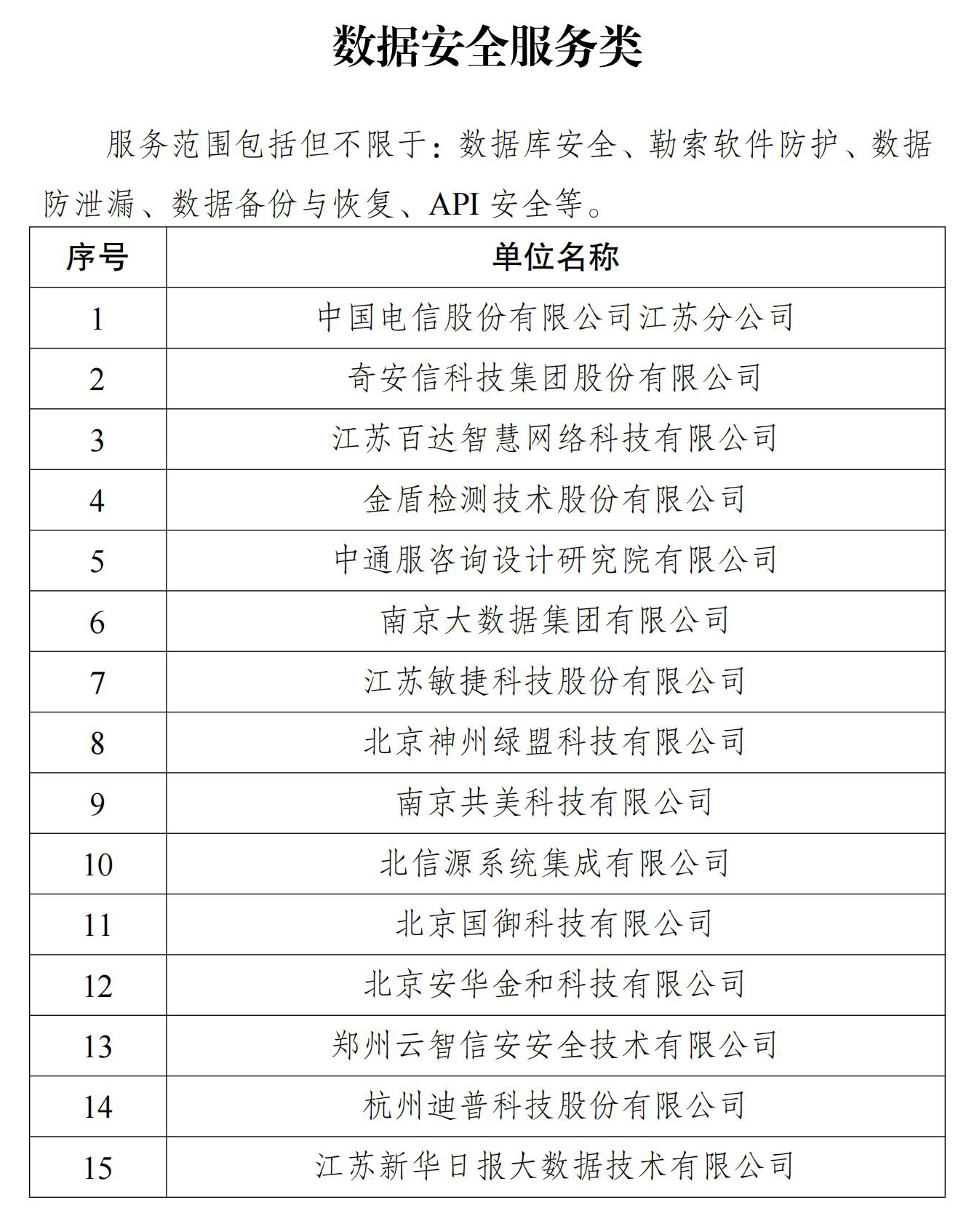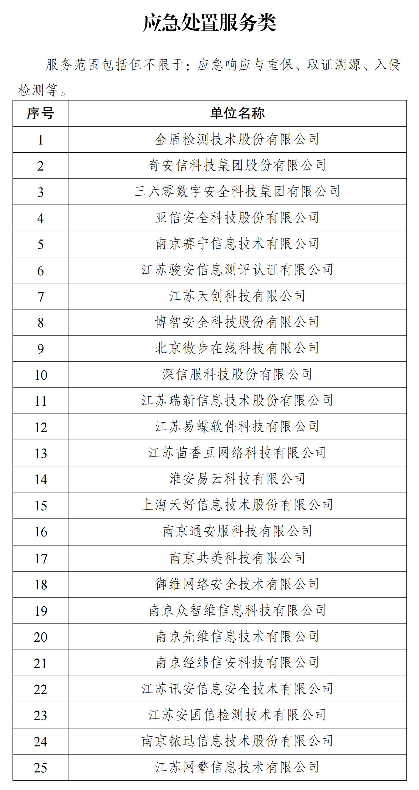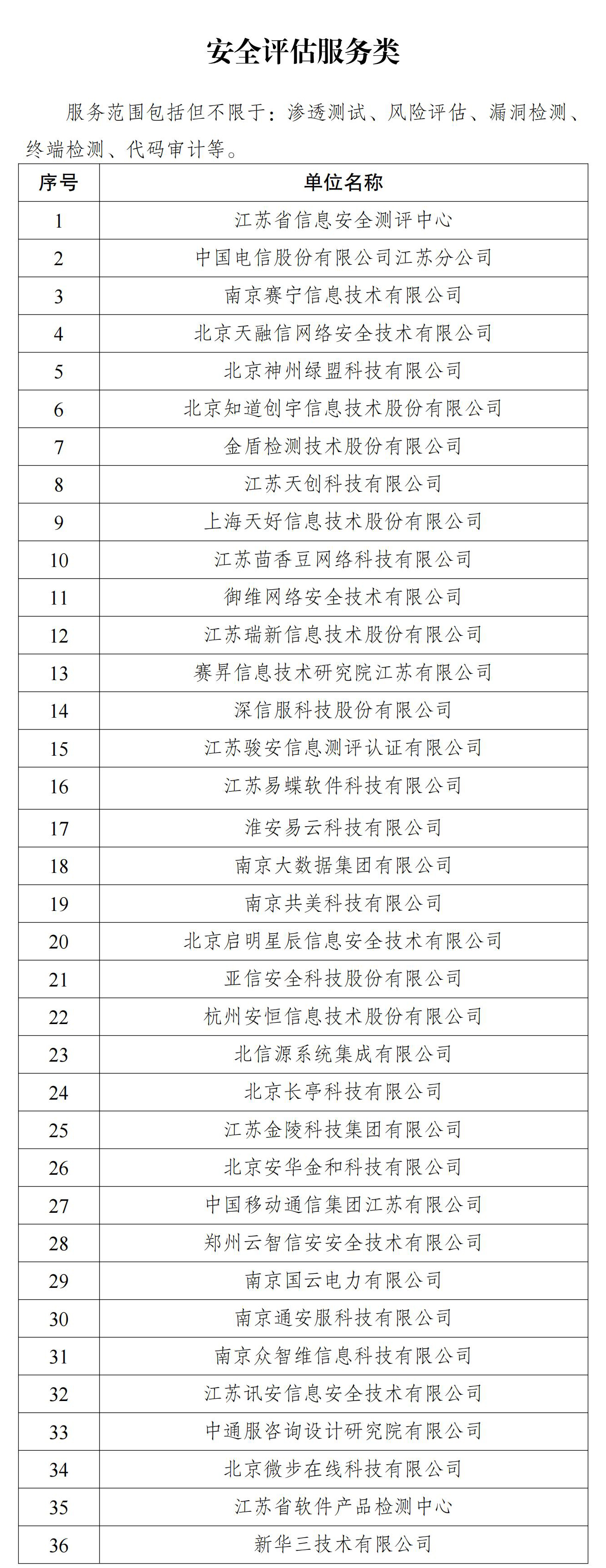 2024年度江蘇省網(wǎng)絡(luò)安全服務(wù)資源池入池單位名單公示