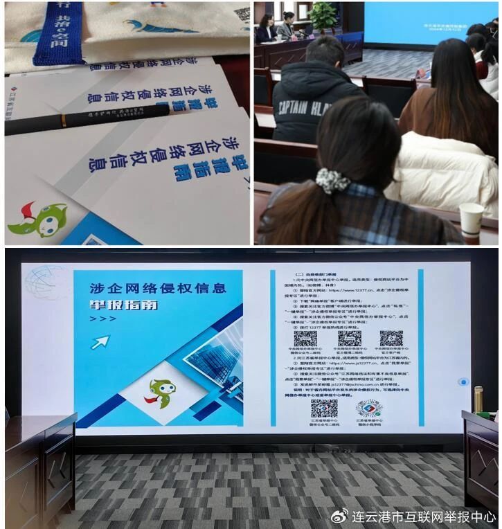 連云港市委網(wǎng)信辦工作人員走進(jìn)市交通控股集團(tuán),通過分享典型案例、發(fā)放《涉企網(wǎng)絡(luò)侵權(quán)信息舉報指南》、現(xiàn)場答疑等方式,普及涉企網(wǎng)絡(luò)侵權(quán)常見類型、舉報受理范圍、舉報方式渠道等知識,引導(dǎo)企業(yè)充分認(rèn)識網(wǎng)絡(luò)侵權(quán)行為,增強(qiáng)防范應(yīng)對能力,積極舉報涉企違法違規(guī)內(nèi)容,合理合法維護(hù)企業(yè)在網(wǎng)絡(luò)空間的合法權(quán)益。