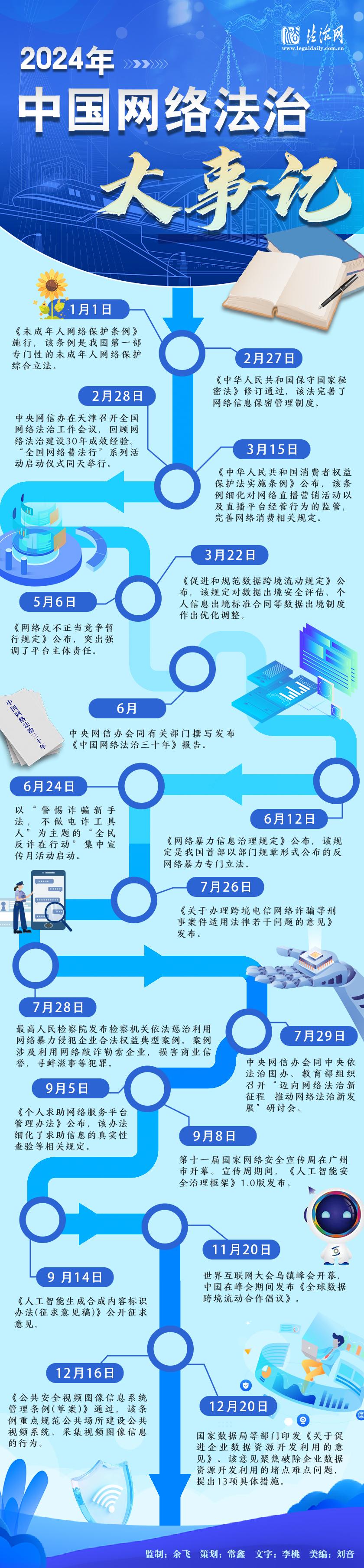 4月27日,國家互聯(lián)網(wǎng)信息辦公室發(fā)布《中國網(wǎng)絡法治發(fā)展報告(2024年)》。這是首部國家部門層面發(fā)布的網(wǎng)絡法治綜合性年度報告,既是《中國網(wǎng)絡法治三十年》報告的續(xù)篇,也是中國網(wǎng)絡法治發(fā)展年度報告的開篇。讓我們從這一年的大事記中,了解我國2024年網(wǎng)絡法治的發(fā)展歷程。