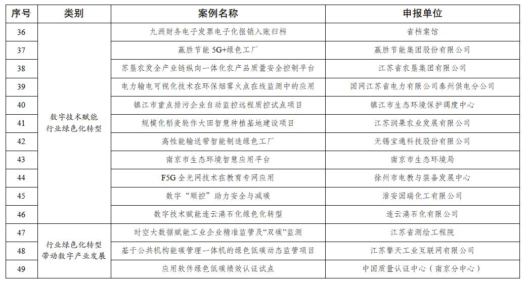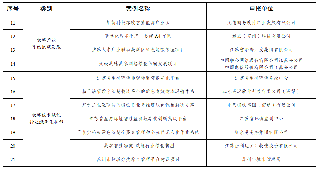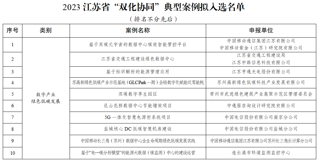 為貫徹落實(shí)黨中央、國(guó)務(wù)院關(guān)于碳達(dá)峰碳中和、數(shù)字中國(guó)建設(shè)的決策部署以及省委、省政府有關(guān)工作要求,加快推進(jìn)全省數(shù)字化綠色化協(xié)同轉(zhuǎn)型發(fā)展(以下簡(jiǎn)稱“雙化協(xié)同”),加強(qiáng)“雙化協(xié)同”典型示范和經(jīng)驗(yàn)交流,助力數(shù)字江蘇和美麗江蘇建設(shè),省委網(wǎng)信辦會(huì)同省發(fā)展改革委、省工業(yè)和信息化廳、省生態(tài)環(huán)境廳、省通信管理局聯(lián)合組織開(kāi)展了2023江蘇省“雙化協(xié)同”典型案例征集活動(dòng)。經(jīng)各地各有關(guān)部門(mén)推薦、形式審核、專家評(píng)審和綜合審議,遴選了56個(gè)典型案例。現(xiàn)將擬入選2023江蘇省“雙化協(xié)同”典型案例名單進(jìn)行公示。