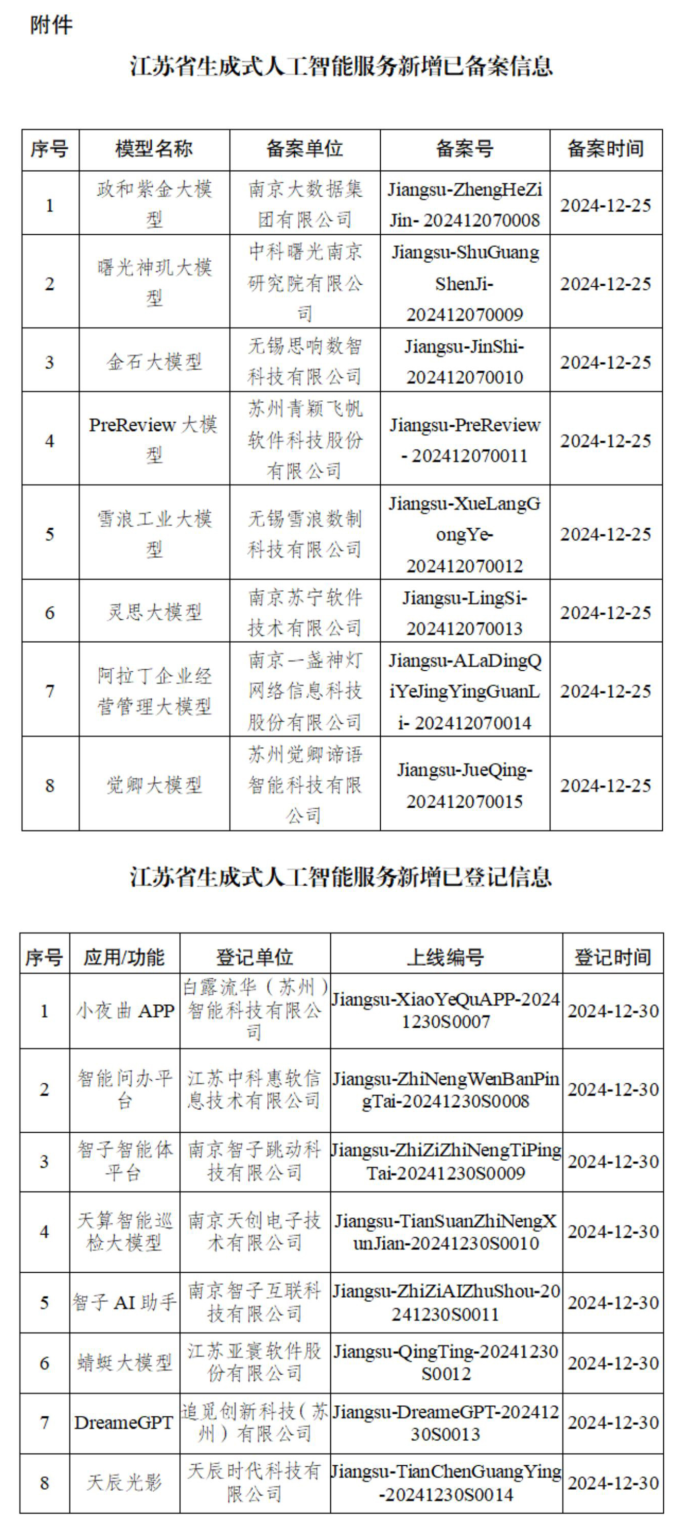 附件:江蘇省生成式人工智能服務(wù)新增已備案(登記)信息