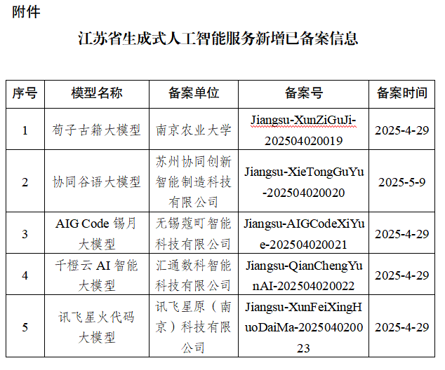 附件:江蘇省生成式人工智能服務(wù)新增已備案信息