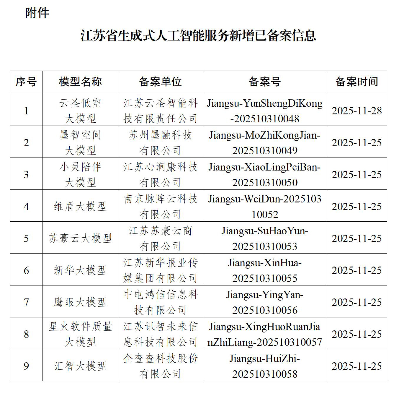 附件:江蘇省生成式人工智能服務(wù)新增已備案信息