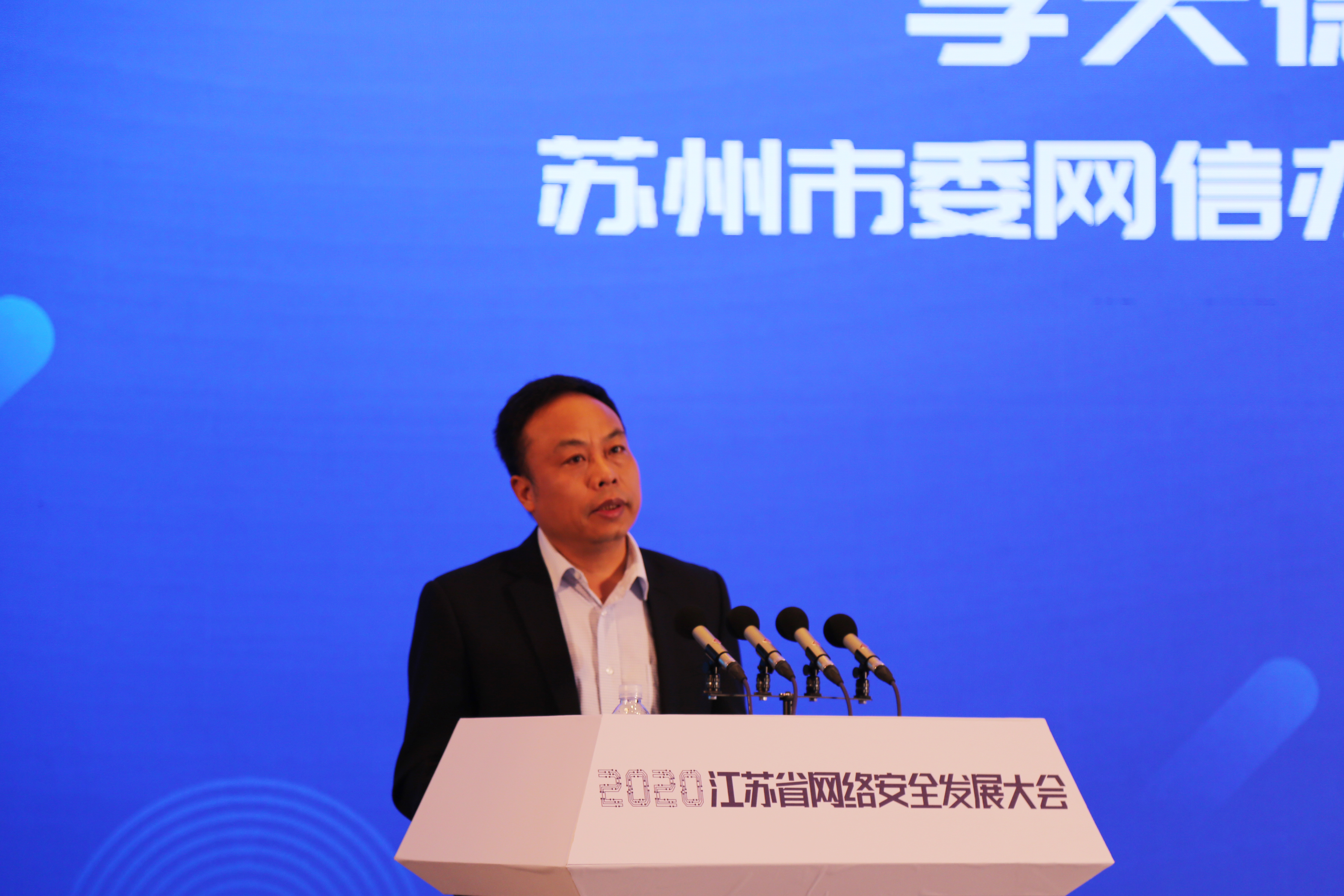 在設區(qū)市專項行動經(jīng)驗分享環(huán)節(jié),蘇州市委網(wǎng)信辦副主任李天德和無錫市委網(wǎng)信辦副主任魯新龍分別介紹了“網(wǎng)安2020”的蘇州情況和無錫情況。