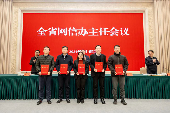 會議為2023年度全省網(wǎng)信工作創(chuàng)新案例和優(yōu)秀調(diào)研成果頒獎。國家安全中心江蘇分中心,南京、蘇州、常州、南通市委網(wǎng)信辦,省廣電總臺,徐工集團等7家單位負責人作交流發(fā)言。
