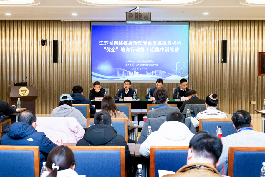 1月12日,由中共江蘇省委網(wǎng)信辦主辦、江蘇省網(wǎng)絡空間安全學會承辦的江蘇省網(wǎng)絡數(shù)據(jù)治理專業(yè)支撐服務機構“優(yōu)企”培育行動第1期集中訓練營在東南大學四牌樓校區(qū)正式開班。省委網(wǎng)信辦副主任趙明出席并作開班動員,東南大學網(wǎng)絡空間安全學院黨委書記何熠致辭。我省參與“優(yōu)企”培育行動的第一批企業(yè)機構學員參加活動。