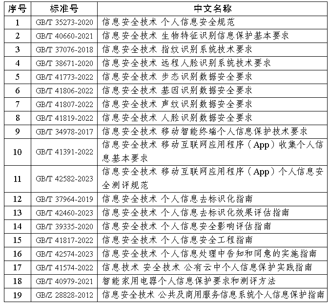 國家標(biāo)準(zhǔn)目錄(個(gè)人信息類)