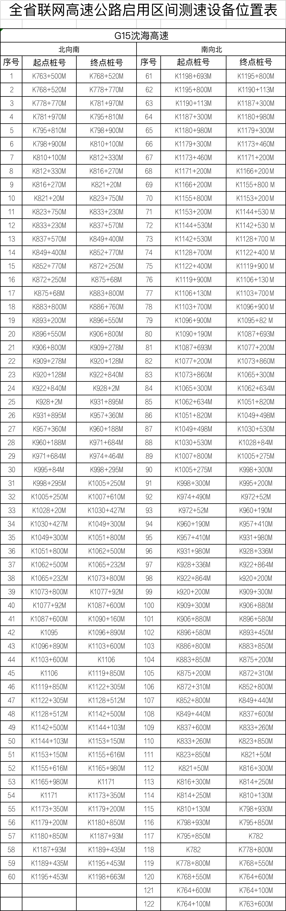 附件:全省聯(lián)網(wǎng)高速公路啟用區(qū)間測(cè)速設(shè)備位置表