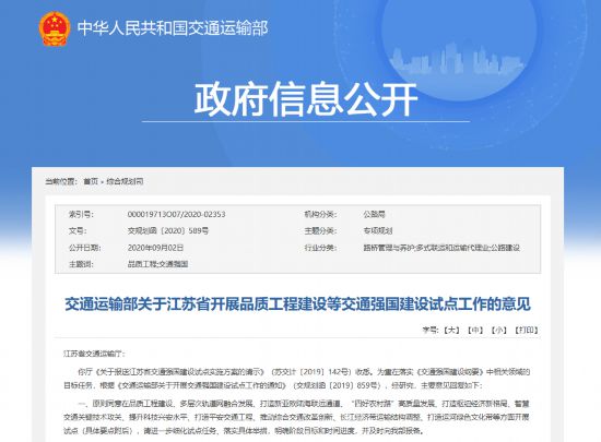 近日,交通運輸部批復(fù)江蘇交通強國建設(shè)試點工作重點 ,原則同意在品質(zhì)工程建設(shè)、多層次軌道網(wǎng)融合發(fā)展、打造新亞歐陸海聯(lián)運通道、“四好農(nóng)村路”高質(zhì)量發(fā)展、打造樞紐經(jīng)濟新格局、智慧交通關(guān)鍵技術(shù)攻關(guān)、提升科技興安水平、打造平安交通工程、推動綜合交通改革創(chuàng)新、長江經(jīng)濟帶運輸結(jié)構(gòu)調(diào)整、打造運河綠色文化帶等方面開展試點。