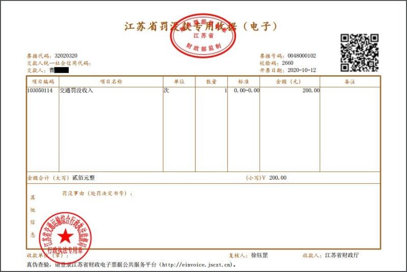 電子票據(jù)相對傳統(tǒng)的紙質(zhì)票據(jù)更快速,提高了工作效率,減少當事人等待時間。通過系統(tǒng)產(chǎn)生一張載有違法當事人相關(guān)信息、罰款金額和二維碼的繳款通知書,只需要用手機“掃一掃”,違法當事人成功繳納行政處罰罰沒款后,就能讀取電子票據(jù),可自行下載、打印票據(jù)、查驗電子票據(jù)。