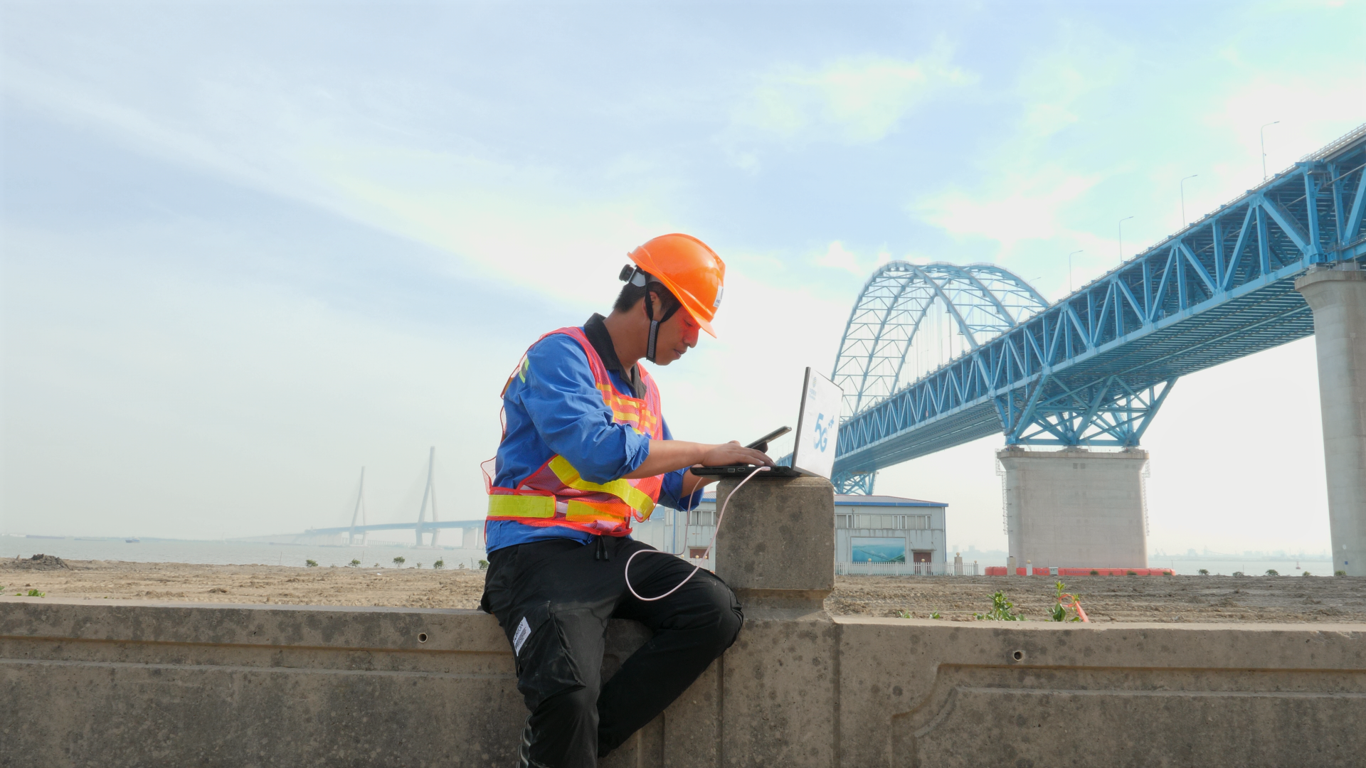 南通移動工作人員在滬蘇通大橋調(diào)試5G網(wǎng)絡