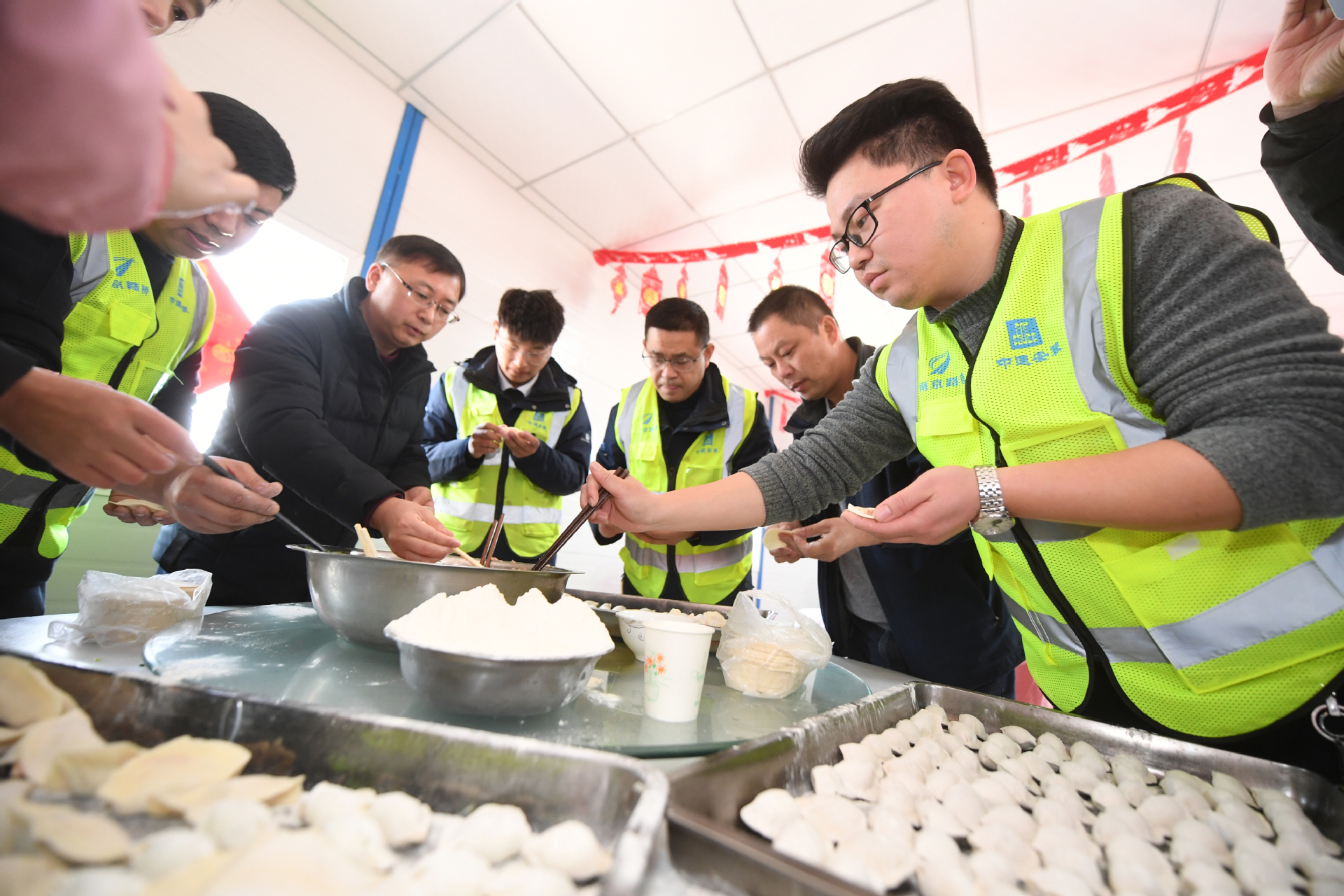 除夕,312國(guó)道仙隱北路段負(fù)責(zé)立交橋建設(shè)的五標(biāo)項(xiàng)目部里分外熱鬧,來(lái)自五湖四海的工友們聚在一起過(guò)年。 通訊員 孫逸飛 交匯點(diǎn)記者 邵丹 攝