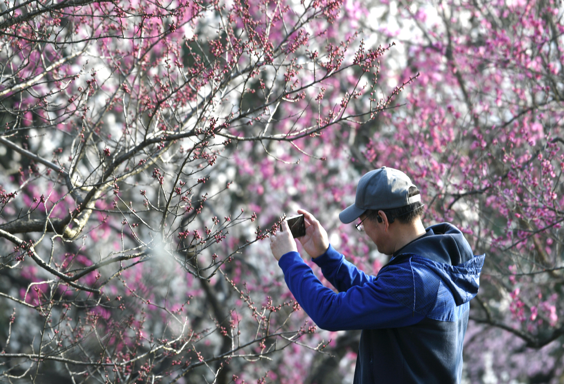 初四一大早,無(wú)錫市民張凌帶著一家人前往無(wú)錫梅園賞梅。1912年,無(wú)錫民族實(shí)業(yè)家榮宗敬、榮德生兄弟倚山植梅,以梅飾山,在這里創(chuàng)建了無(wú)錫梅園。如今,這處江南賞梅勝地已擁有梅樹(shù)1萬(wàn)多株,梅花品種400多個(gè)。景區(qū)內(nèi)的粉紅朱砂、玉牡丹、二綠萼等早花品種次第開(kāi)放,展開(kāi)笑靨迎接著八方來(lái)客?!按汗?jié)開(kāi)啟了一年中最美的季節(jié),凌寒盛開(kāi)的梅花是春天的使者?!痹趶埩杩磥?lái),“賞梅”已是很多家庭的春節(jié)新民俗,長(zhǎng)假期間到花香氤氳的梅花樹(shù)叢中和春天來(lái)次“邂逅”,拍上一批與梅花合影留念的家庭照,這個(gè)假期才算圓滿。