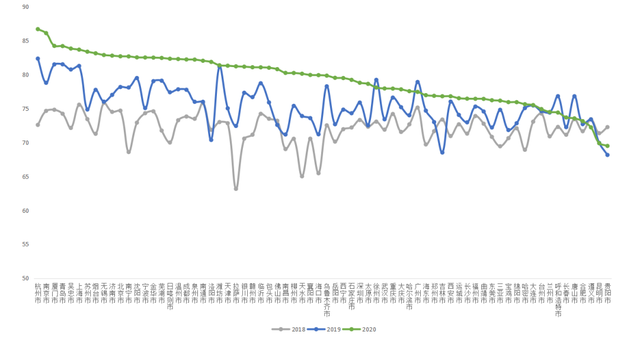 ▲2018-2020年70個連續(xù)調(diào)查城市滿意度得分