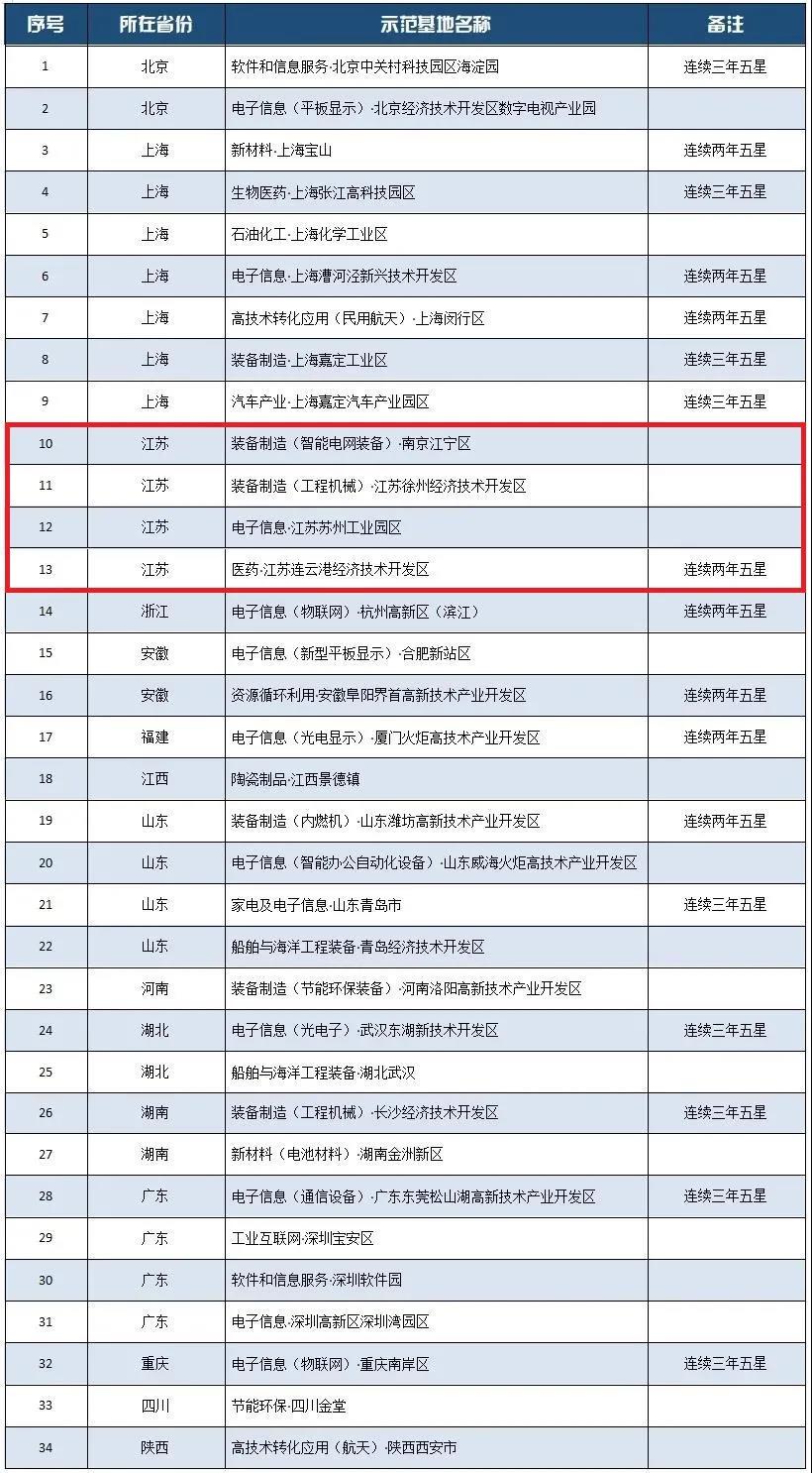 此次江蘇的南京市江寧區(qū)裝備制造(智能電網裝備)、徐州經濟開發(fā)區(qū)裝備制造(工程機械)、蘇州工業(yè)園區(qū)電子信息、連云港經濟技術開發(fā)區(qū)醫(yī)藥等4家示范基地獲評2020年五星示范基地,數量僅次于上海,與山東、廣東并列第二。其中,連云港經濟技術開發(fā)區(qū)醫(yī)藥示范基地是我省唯一一家連續(xù)兩年獲評五星的示范基地。