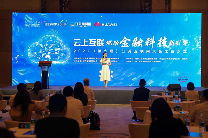 龍虎網(wǎng)訊(記者 史駿 攝影 朱熹 薛飛 攝像 火劍 通訊員 喬橋)9月6日晚,2022(第九屆)江蘇互聯(lián)網(wǎng)大會之夜沙龍在建鄴江東商貿(mào)區(qū)舉辦。中國互聯(lián)網(wǎng)協(xié)會副理事長何桂立,中國互聯(lián)網(wǎng)協(xié)會研究部部長張姍姍,建鄴區(qū)人民政府副區(qū)長袁婷,建鄴區(qū)相關(guān)單位負(fù)責(zé)人以及40多位創(chuàng)業(yè)先鋒、金融及互聯(lián)網(wǎng)企業(yè)代表、經(jīng)濟學(xué)專家齊聚南京建鄴,以“云上互聯(lián),燃動金融科技新引擎”為主題,圍繞數(shù)字經(jīng)濟、互聯(lián)網(wǎng)創(chuàng)新等熱點議題,夜話金融科技發(fā)展新趨勢,共探數(shù)字化轉(zhuǎn)型發(fā)展之路。