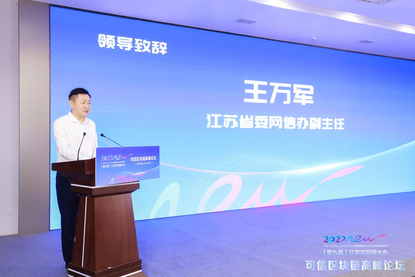 9月8日,以“共識信任,鏈上未來”為主題的2022(第九屆)江蘇互聯(lián)網(wǎng)大會可信區(qū)塊鏈高峰論壇在南京鼓樓創(chuàng)新廣場成功舉辦。本次論壇設置了產業(yè)宣介、主旨演講、圓桌論壇等環(huán)節(jié),江蘇省委網(wǎng)信辦副主任王萬軍、南京鼓樓高新區(qū)黨工委書記翁再寧致辭,江蘇省互聯(lián)網(wǎng)協(xié)會副理事長兼秘書長劉湘生、南京市委網(wǎng)信辦副主任黃益峰參加會議。
