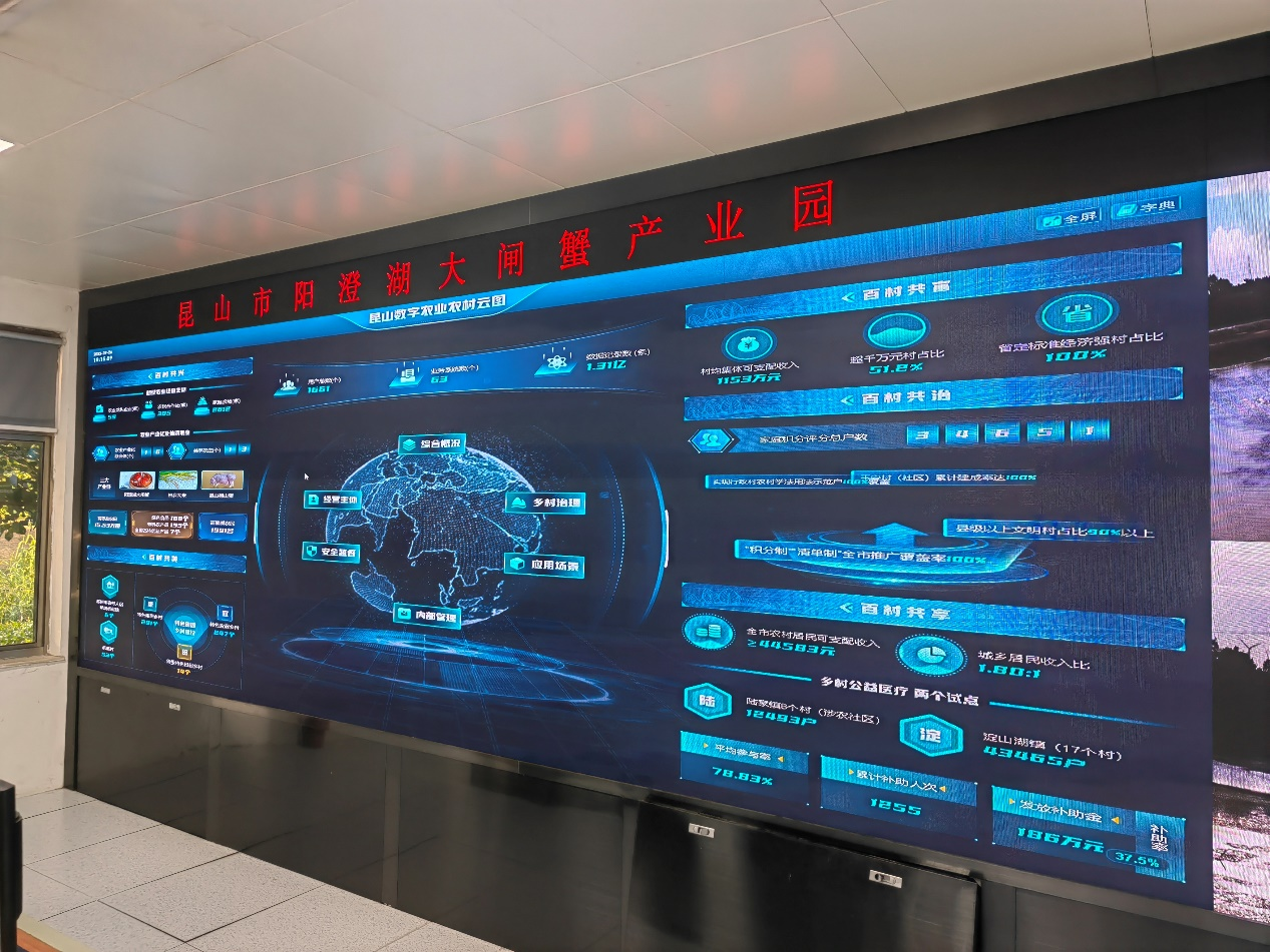 驅(qū)車(chē)十分鐘,便可來(lái)到位于隔壁龍?zhí)洞宓睦ド匠魏箝l蟹產(chǎn)業(yè)園辦公室,在中控室巨大的屏幕上,昆山各個(gè)蟹塘的實(shí)時(shí)場(chǎng)景盡收眼底。