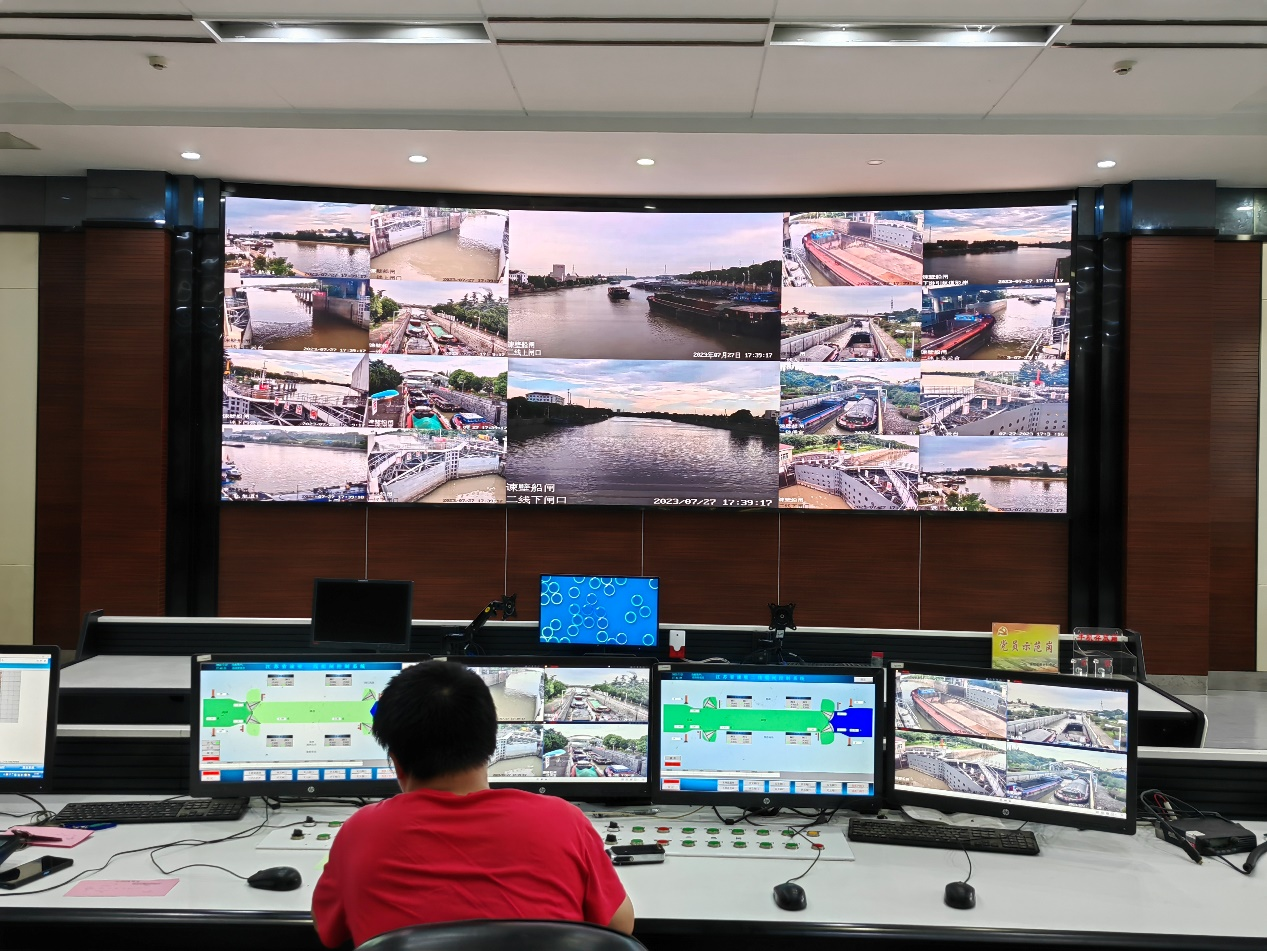 船閘一側(cè)的運(yùn)調(diào)樓船閘指揮中心內(nèi),記者看到,該航道外場(chǎng)系統(tǒng)搭載的視頻功能對(duì)船舶的航行及兩岸基礎(chǔ)設(shè)施運(yùn)行情況進(jìn)行著全方位動(dòng)態(tài)監(jiān)管,“通過(guò)系統(tǒng)可以將過(guò)閘、氣象等信息推送給船民?!毖ξ尿E說(shuō)。