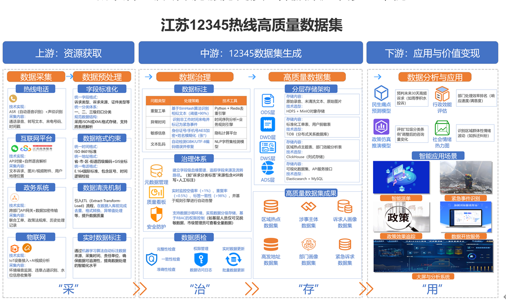 "12345熱線高質量數(shù)據(jù)集”,則提供了智能派單、緊急事件識別、政策效果追蹤、數(shù)據(jù)開放服務等創(chuàng)新應用。