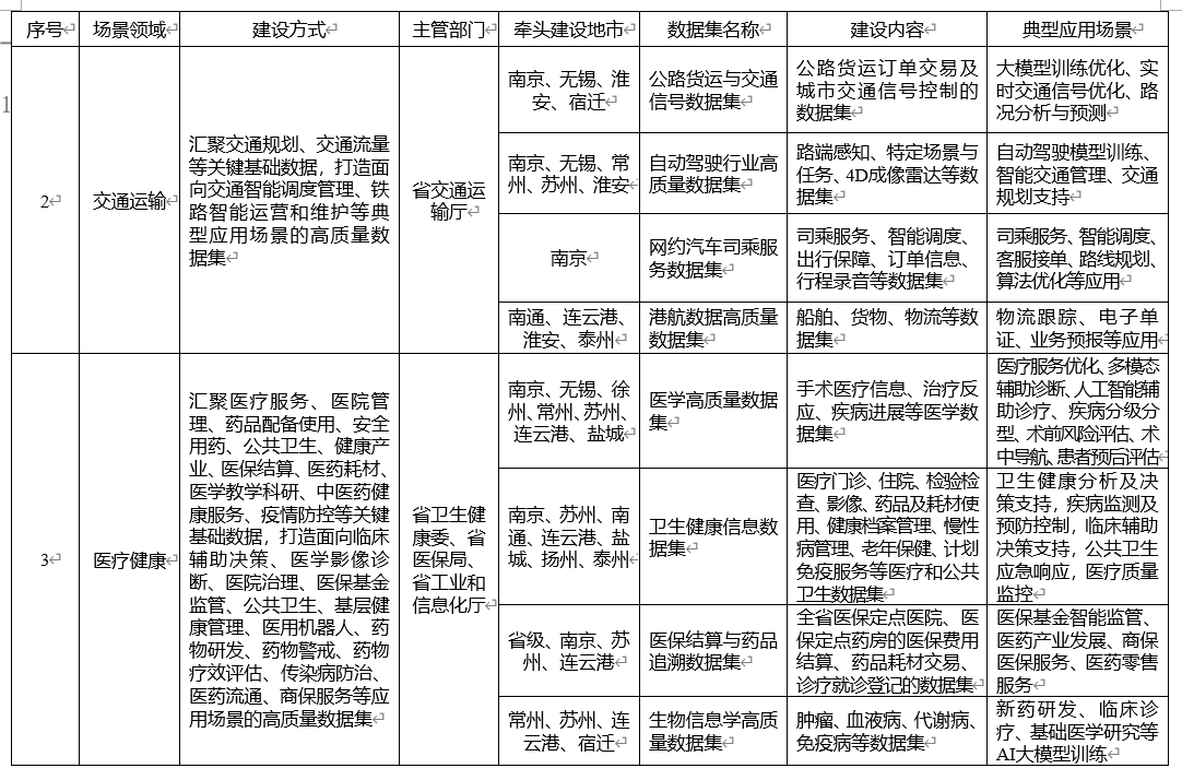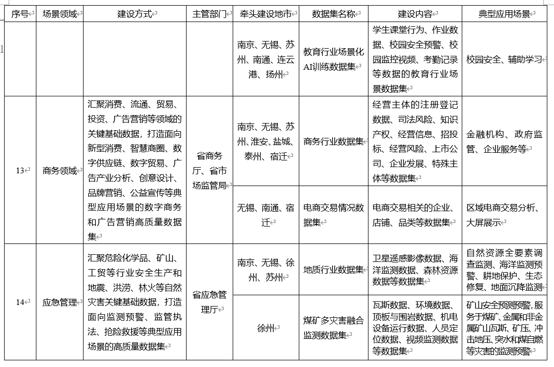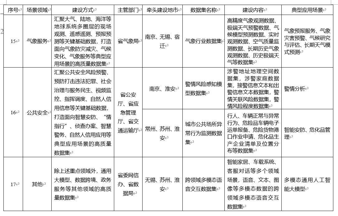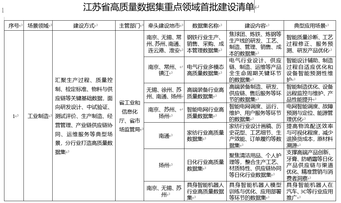 首批建設清單,錨定江蘇數(shù)據(jù)富集領域及創(chuàng)新領域發(fā)力。清單共涉及工業(yè)制造、交通運輸、醫(yī)療健康、科學研究、金融服務、文化旅游、城市治理、人力資源、綠色低碳、農(nóng)業(yè)農(nóng)村、智慧能源、教育教學、商務領域、應急管理、氣象服務、公共安全16個重點領域,以及除上述重點領域外,通用大模型、數(shù)據(jù)跨境、政務服務等其他領域的高質量數(shù)據(jù)集。