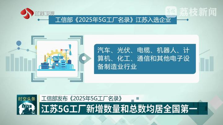 日前,工信部發(fā)布《2025年5G工廠名錄》,共48個行業(yè)、560個項目入選。其中江蘇91家工廠入圍,占全國總數(shù)的16.25%,新增數(shù)量和總數(shù)均居全國第一。