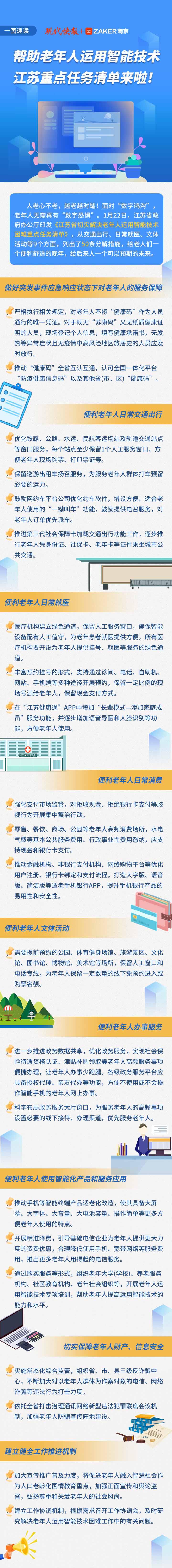 人老心不老,越老越時髦!面對 " 數(shù)字鴻溝 ",老年人無需再有 " 數(shù)字恐懼 "。1 月 22 日,江蘇省政府新聞發(fā)布會召開,公布解讀省政府辦公廳剛剛印發(fā)的《江蘇省切實(shí)解決老年人運(yùn)用智能技術(shù)困難重點(diǎn)任務(wù)清單》(以下簡稱《任務(wù)清單》)。記者注意到,《任務(wù)清單》從交通出行、日常就醫(yī)、文體活動等 9 個方面,列出了 50 條分解措施,今后,老年人不用 " 健康碼 " 也能通行,還能享受人工買票、" 一鍵叫車 "、" 一站式 " 窗口就醫(yī)等各種便捷。
