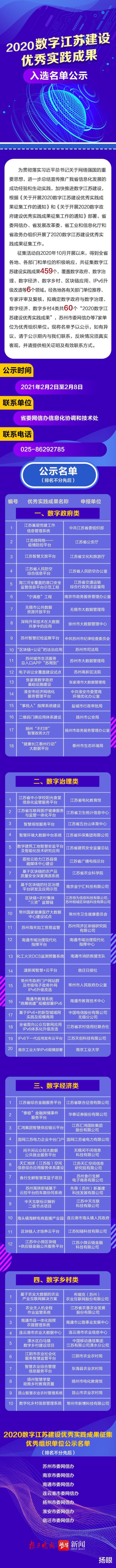 2020數(shù)字江蘇建設(shè)優(yōu)秀實踐成果入選名單公示